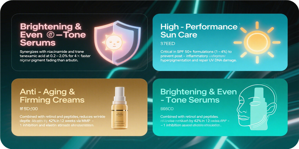 0.1%-5% Blends: Optimized for brightening serums, sun care, and age-reversal formulations